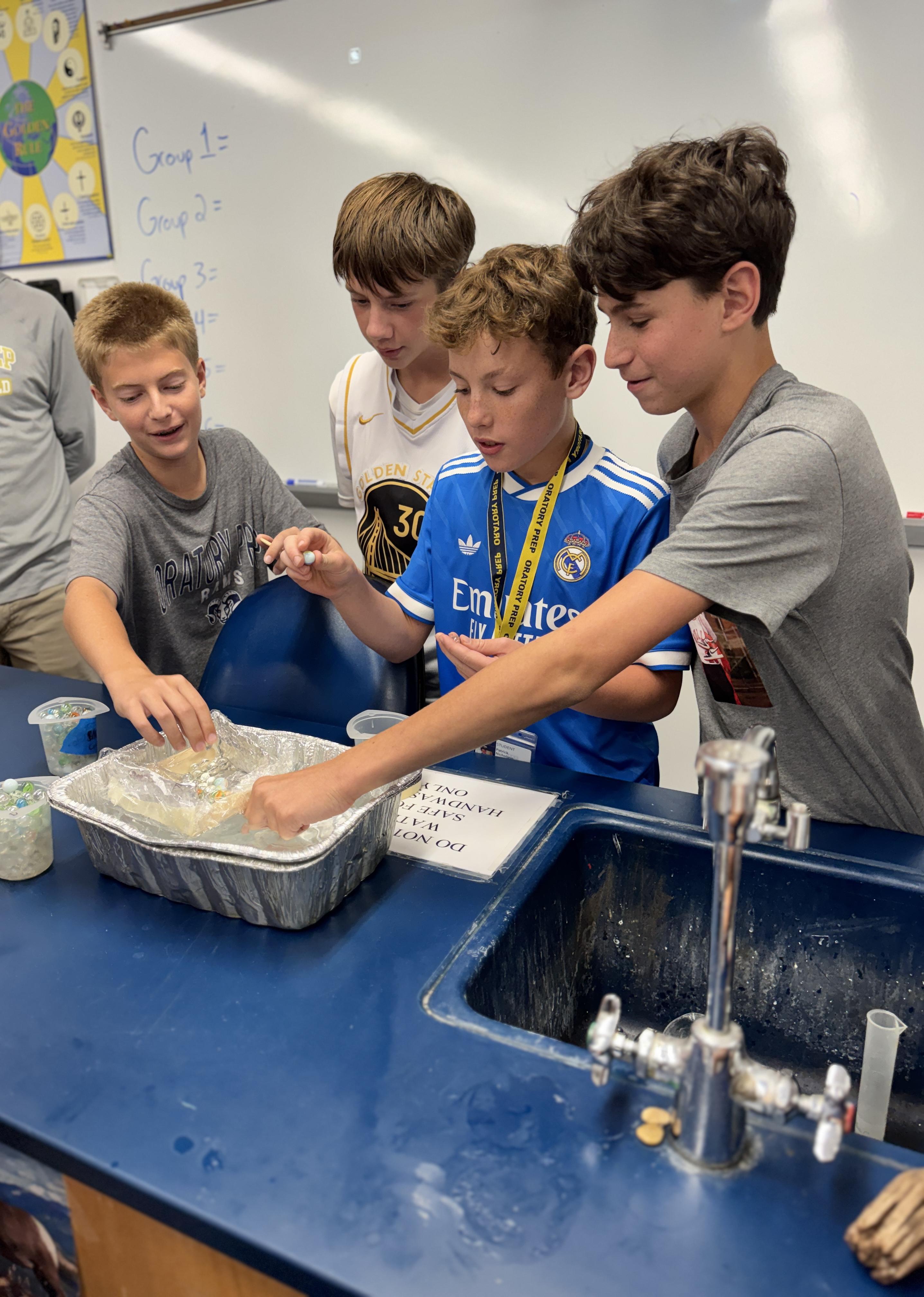Our 7th and 8th graders dove into a hands-on lesson in density last week—by setting sail! Armed with nothing more than foil, popsicle sticks, and tape, students engineered boats designed to hold as many marbles as possible. The winning design amazed us all, holding an incredible 500 marbles before sinking!