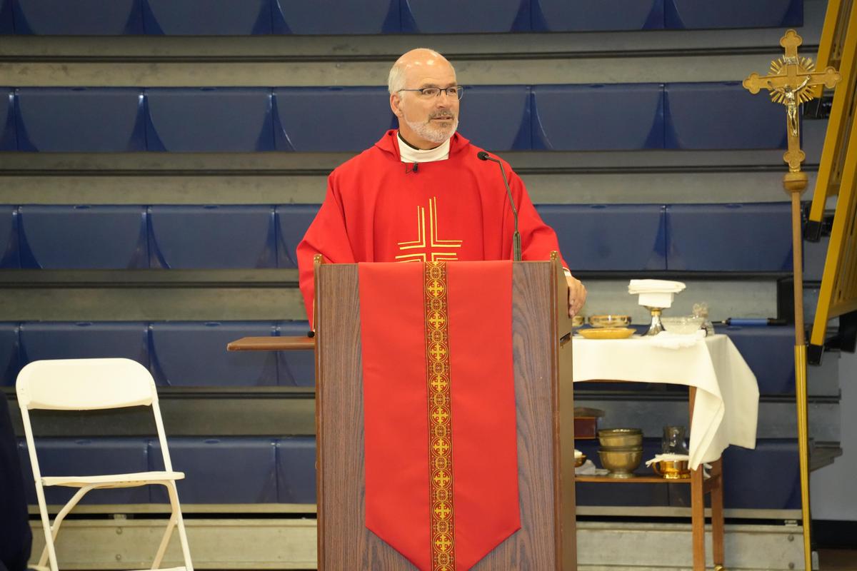 We began with an assembly where upperclassmen reflected on how the Four Pillars—fidelity, humility, charity, and joy—are lived out each day at Oratory. The community then celebrated the Mass of the Holy Spirit with Father Matthew, concelebrated by Fr. David Santos of St. James Church in Springfield.