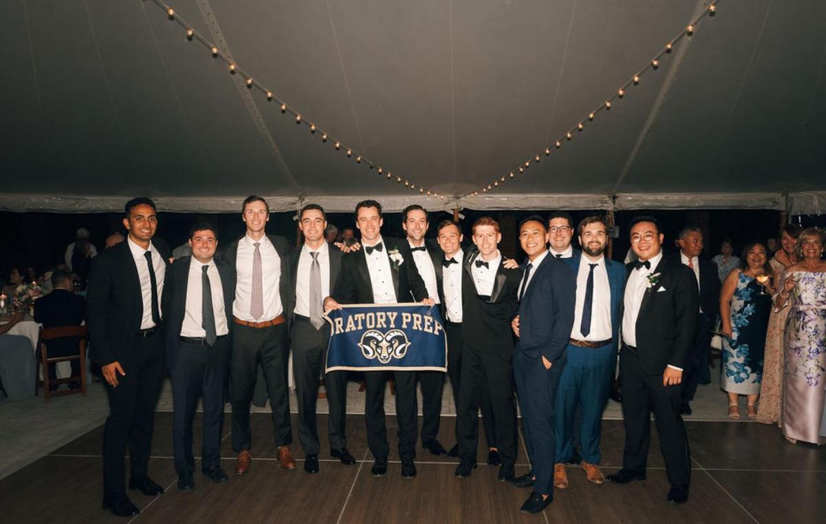 Pictured alongside Brendan are his fellow Rams: John Kolassa, Jack Bizub, Jack Skinner, Doug DeGoyler, Matt Muoio, Matt Lanigan, Kevin Harnett, Austin Lee, Joe Bizub, Andrew Standing, and Andrew Lee. Their presence was a wonderful reminder of the enduring friendships and connections formed at Oratory Prep.