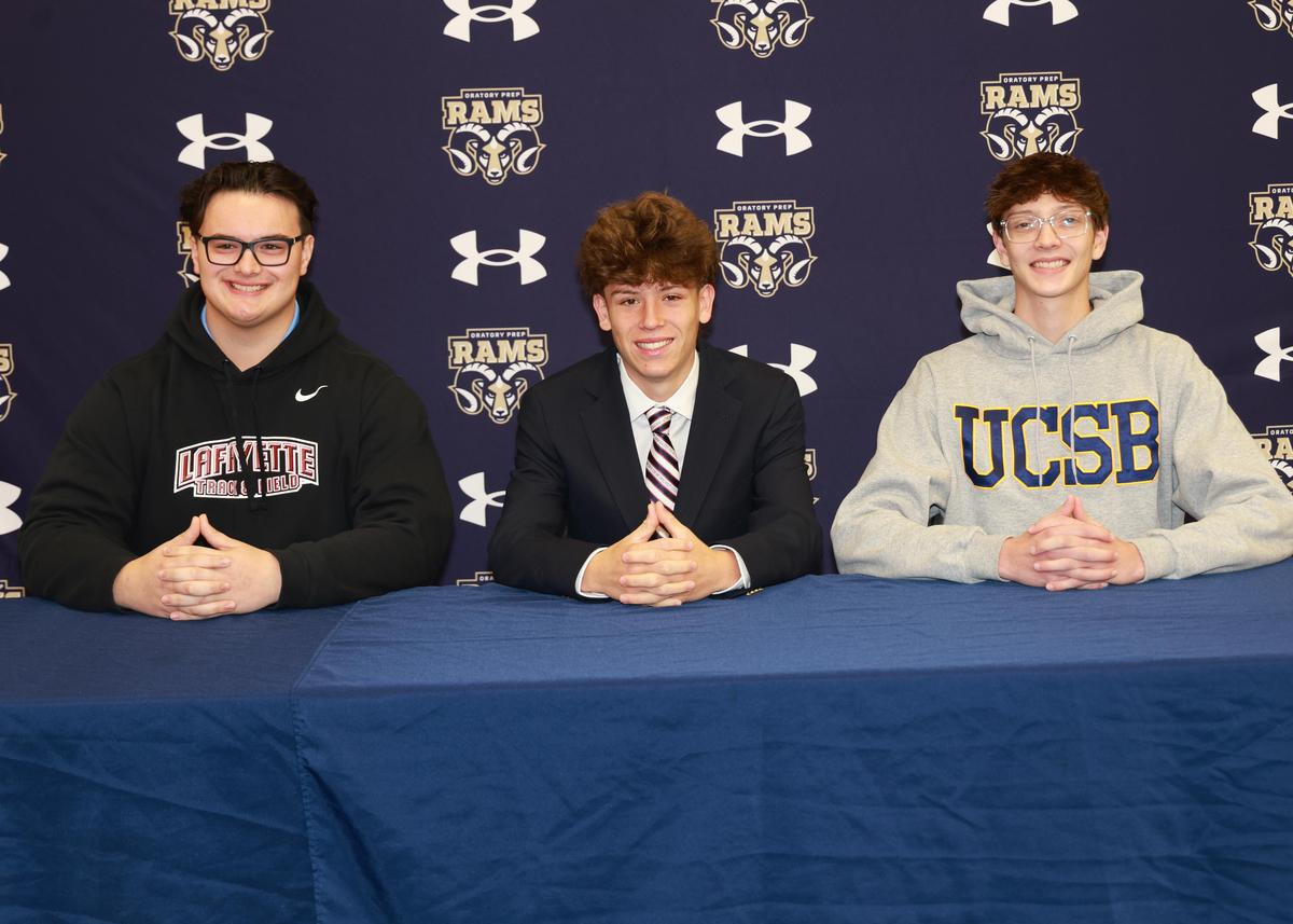 These three Senior Rams exemplify what it means to be part of the Oratory Prep Brotherhood through their commitment, character, and passion for their sport. The entire Oratory community congratulates Connor, Joey, and Devon and looks forward to cheering them on as they take this exciting next step in their athletic and academic journeys.